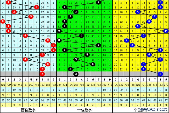 3.在以上9期奖号中,号码012路比折柳开出1:0:2、1:1:1、1:2:0、3:0:0、1:2:0、2:1:0、1:1:1、2:1:0、1:1:1,012路出现个数比为13:9:5,本期瞻望开出012路比1:1:1。