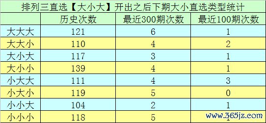 5.在上述9期开奖中,号码大小比折柳为2:1、2:1、2:1、2:1、1:2、2:1、0:3、1:2、3:0,大小 号码出现个数比为15:12,本期瞻望大号热出,眷注大小比2:1。